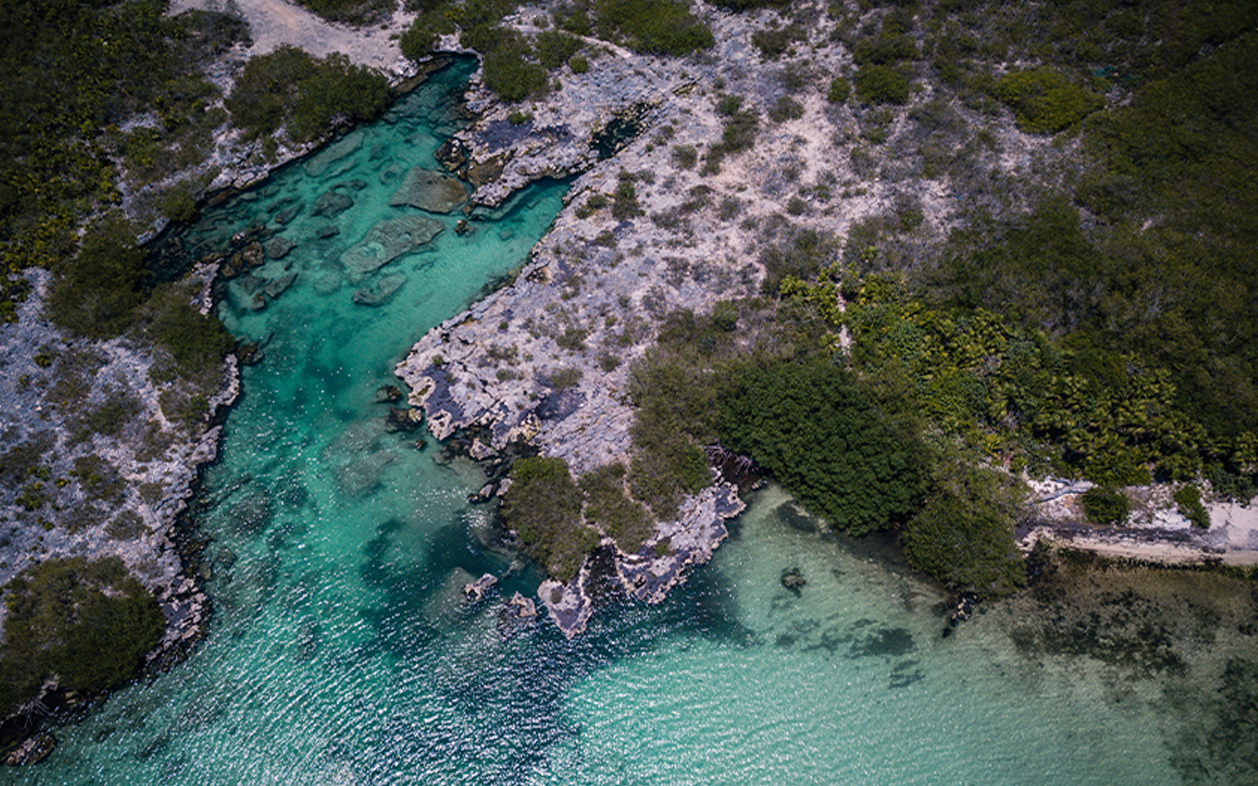 Follow the coast road further north to the shores of Yalku, a turquoise-colored inlet fed by crystal-clear waters bubbling up from cenotes and underground rivers, hence the refreshingly cool temperature.