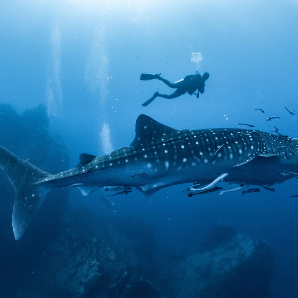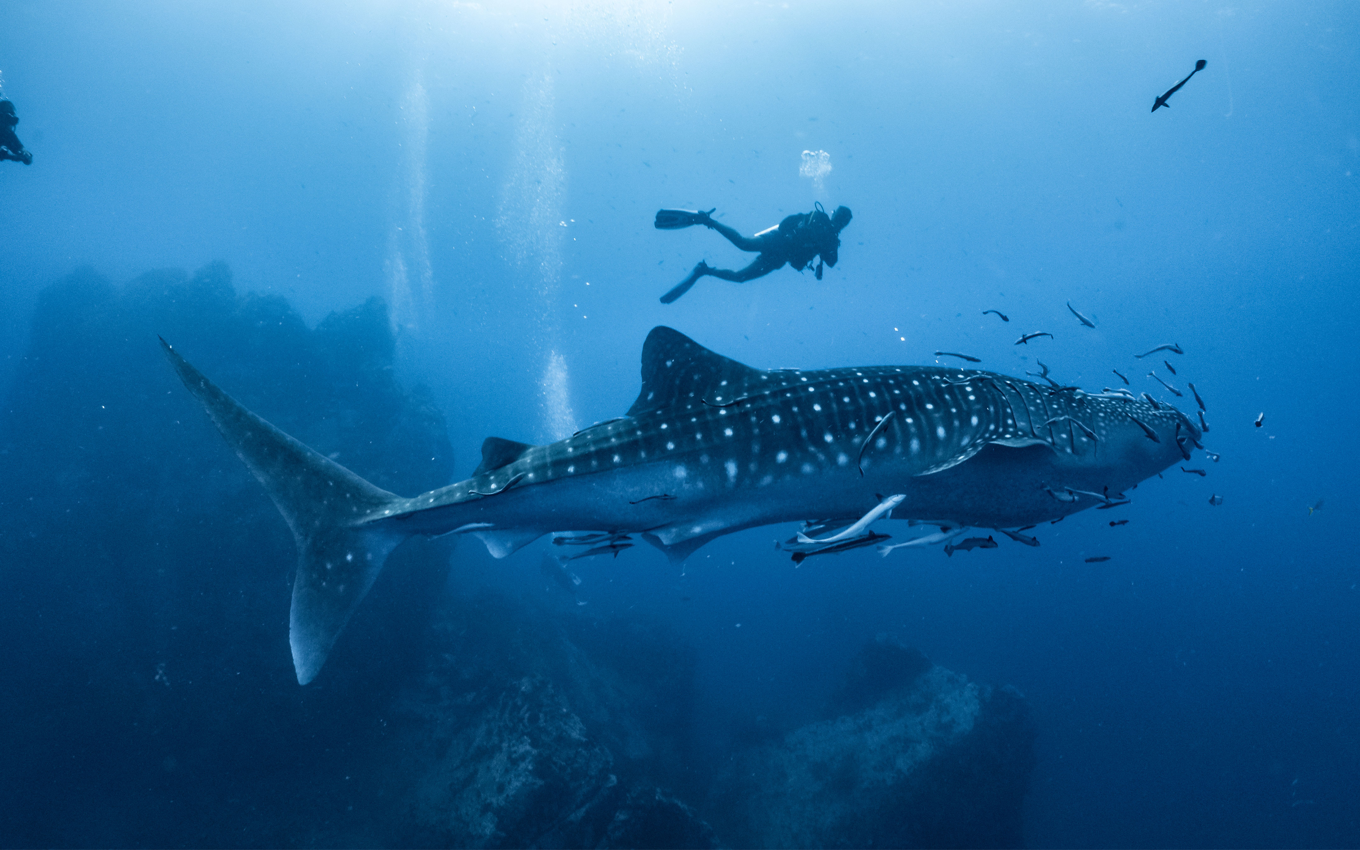 Imagine snorkeling through clear blue waters and watching as a huge creature the size of a bus suddenly appears out of the depths. As the whale shark swims placidly by - its gaping jaws open to scoop up the plankton - you’ll see its markings of spots and stripes, tiny fish busy cleaning parasites from its skin and the ever-present remoras. With a final flick of the tail, it disappears into the distance, leaving you with an incredible sensation of exhilaration and of peace. It is an awe-inspiring sight and an emotional experience, one that wildlife watchers won’t want to miss.