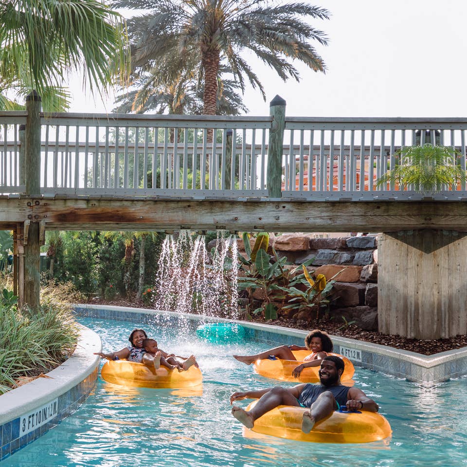 Doing laps on the lazy river in River Island at Orange Lake Resort