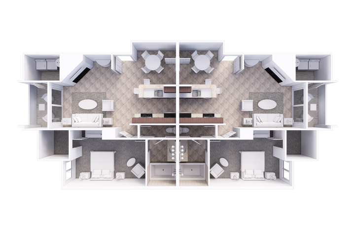 *Some features only available in select villas. Villas shall have furniture appliances, equipment, and all accent furnishing substantially similar to, or of equal or better quality, to those shown or used in the model or descriptive materials.