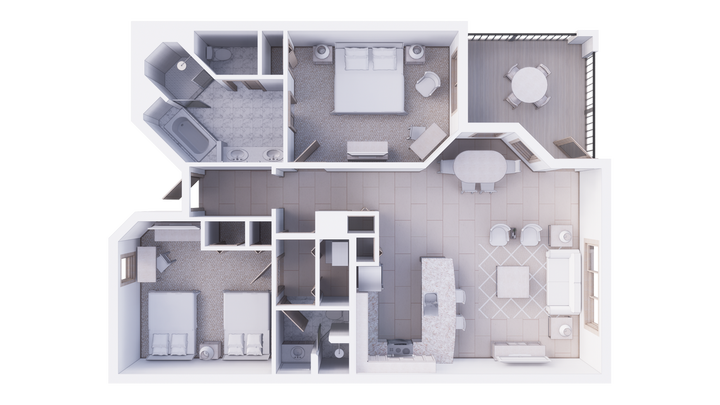*Villas shall have furniture, appliances, equipment, and all accent furnishings substantially similar to, or of equal or better quality, to those shown or used in the model or descriptive materials. Additional floor plans may be available. Some features only available in select villas.