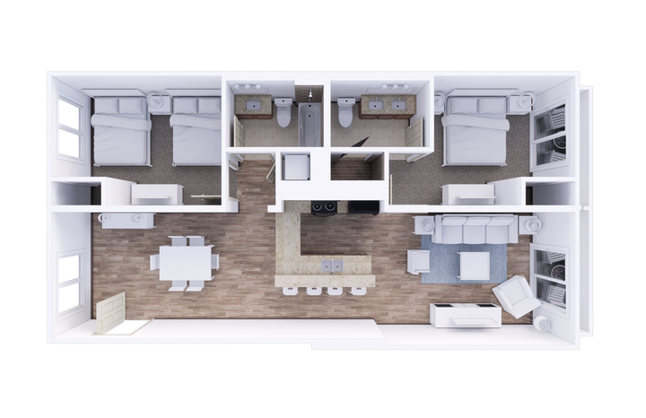 - King-size bed, two full-size beds, plus pullout sleeper sofa in living room
