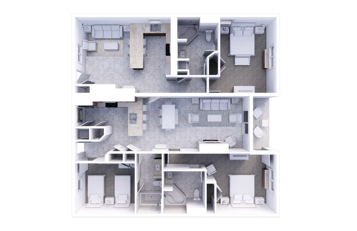 - Two king-size, two twin-size beds, plus pullout sleeper sofa